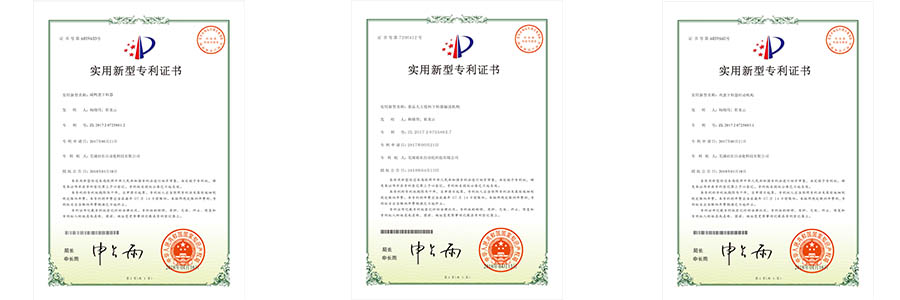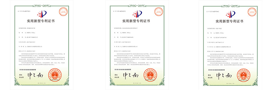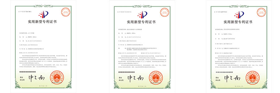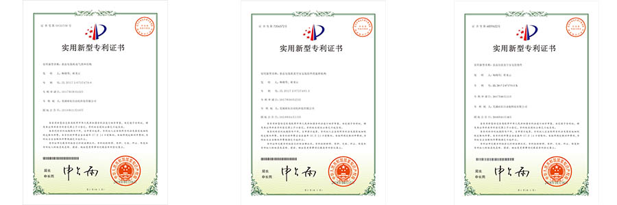 溫州裕東申請(qǐng)的部分專用證書以及蕪湖裕東和上海裕東授權(quán)的專利證書陳列