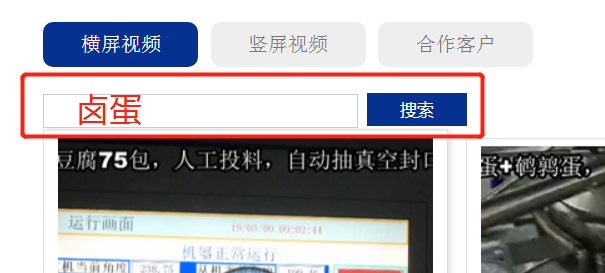2.視頻中心打開之后,發(fā)現(xiàn)跟PC端一樣的界面(如下圖),搜索詞查詢方法也是一樣,比如搜索“給袋式包裝機”;