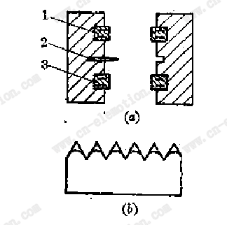 采用熱板加熱封口的間歇制袋式袋裝機上切斷方式,也有應(yīng)用鋸齒刀的。如圖5.62所示。