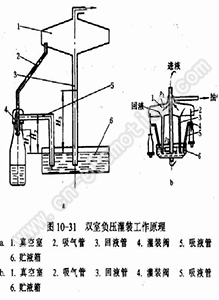 2.雙室負壓灌裝 其特點是貯液箱和真空室分開,中間用真空指示管,又叫回液管連接。