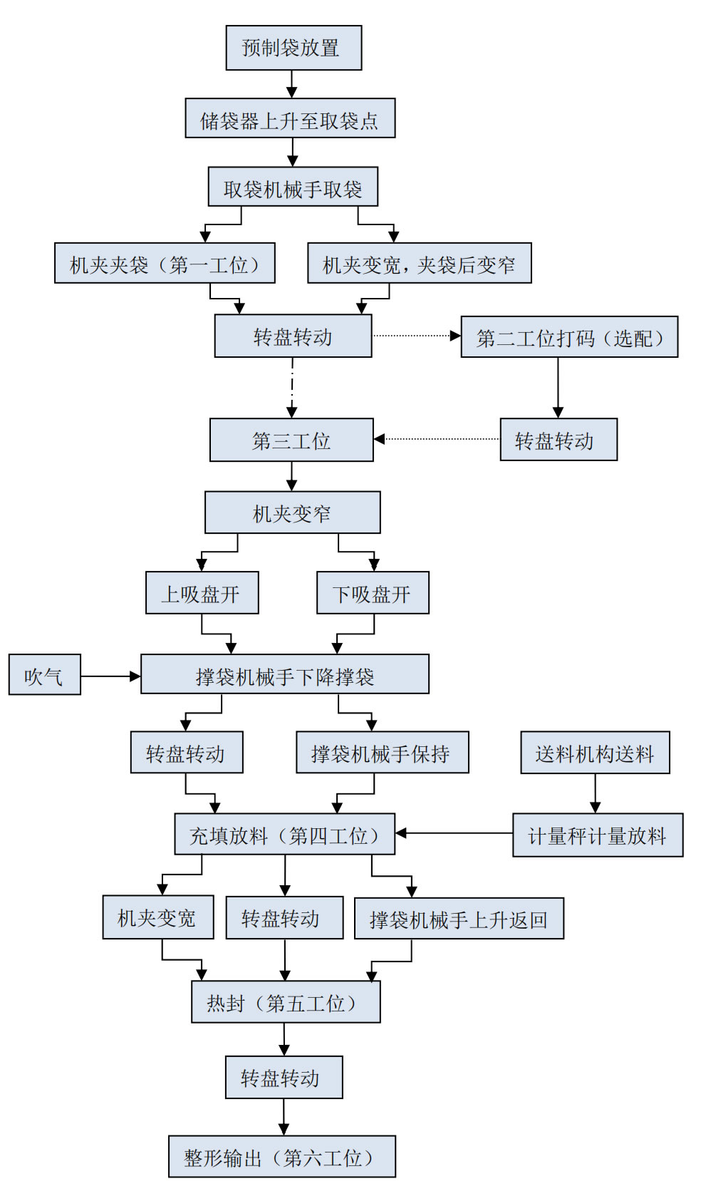 全自動給袋式包裝機生產(chǎn)線工藝流程圖
