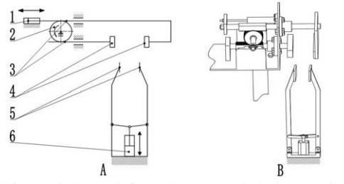 排氣與熱封機構(gòu)(A-機構(gòu)簡圖,B-結(jié)構(gòu)視圖)