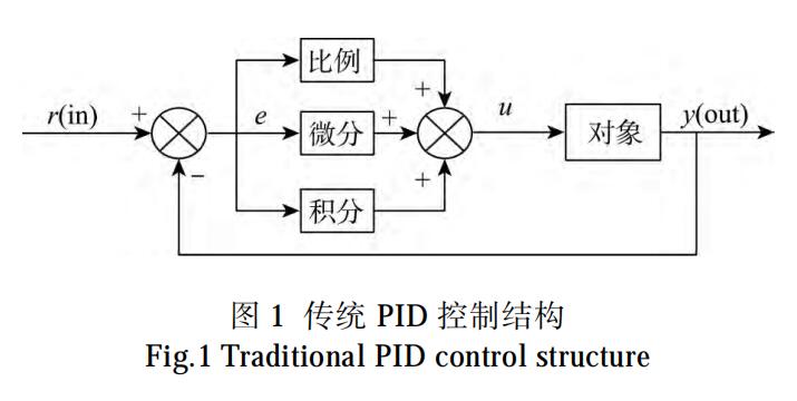 給袋式包裝機(jī)稱量系統(tǒng)普遍采用傳統(tǒng) PID 控制,因?yàn)閭鹘y(tǒng) PID 發(fā)展時間久,其理論基礎(chǔ)深厚,在普通控制中具有較好的控制效果,傳統(tǒng) PID 控制結(jié)構(gòu)見圖 。傳統(tǒng) PID 控制常出現(xiàn)在線性系統(tǒng)的控制中,它將輸入信號與輸出信號進(jìn)行比較得到控制偏差,對該偏差進(jìn)行比例、積分和微分共同運(yùn)算后輸出到控制對象中,使輸入輸出之間偏差縮小。S7-200PLC 中通常利用PLC 自帶的 PID 控制指令模塊來實(shí)現(xiàn) PID 控制,由于 PLC 也是通過其 CPU 進(jìn)行數(shù)據(jù)處理,故只能處理數(shù)字量,這就要求將采集到的信號進(jìn)行模數(shù)轉(zhuǎn)化。