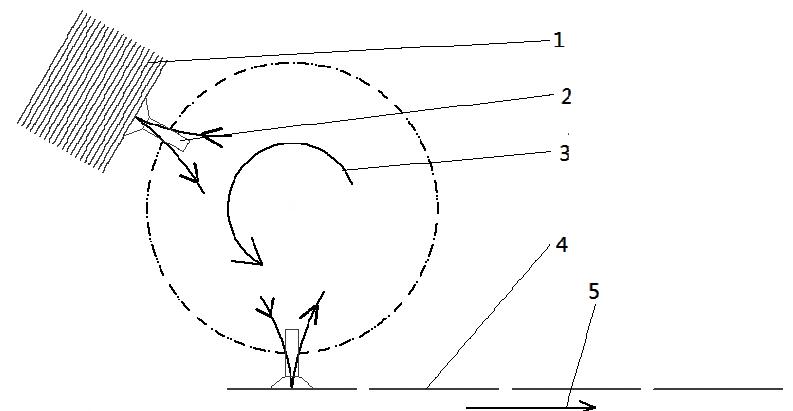 臥袋直線式預(yù)制袋輸送方式在給袋式真空包裝機(jī)中并不常見(jiàn),其主傳送的供送方式是通過(guò)輸送帶或帶夾輸送鏈進(jìn)行輸送的。如圖所示,在連續(xù)供袋系統(tǒng)的供袋過(guò)程中,首先真空吸盤會(huì)運(yùn)動(dòng)到袋庫(kù)表面,于此同時(shí)打開真空吸盤中的真空進(jìn)行取袋。在吸盤離開袋子時(shí),其已經(jīng)將袋子吸附并通過(guò)中間的運(yùn)動(dòng)過(guò)程將袋子調(diào)整到水平位置,此時(shí)會(huì)關(guān)閉真空吸盤中的真空,將袋子放在主傳送的工位上。盡管根據(jù)前面的分析可知被放到主傳送上的袋子速度為零,但是在主傳送接袋的過(guò)程中,為了防止袋子出現(xiàn)歪斜、脫落等情況,需要在主傳送上采取一些限位措施,如傳送帶內(nèi)部設(shè)置真空盒或者用夾子夾緊。