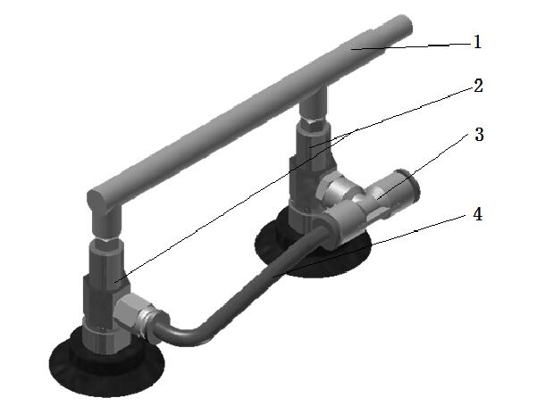 1-擺桿; 2-最小動(dòng)程真空吸盤(pán); 3-三通接頭; 4導(dǎo)氣管
