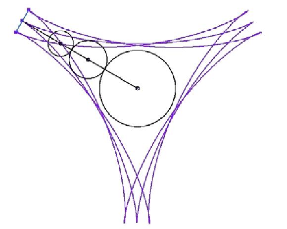給袋式包裝機(jī)真空吸盤接近袋庫(kù)表面時(shí),由于吸盤做的不是平移,所以并不是真空吸盤上的個(gè)點(diǎn)做的都是標(biāo)準(zhǔn)的內(nèi)擺線運(yùn)動(dòng),離吸盤中心越遠(yuǎn)的位置其偏差越大。下圖中表示的是利用機(jī)構(gòu)簡(jiǎn)圖進(jìn)行的運(yùn)動(dòng)模擬得到吸盤中心軌跡以及最外緣處的軌跡,可以明顯看出其存在沿袋子表面的橫向移動(dòng),如果超出給袋式真空包裝機(jī)真空吸盤的容忍范圍,吸袋過(guò)程就會(huì)受到影響。