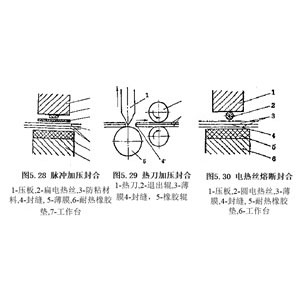 塑料袋裝產(chǎn)品的封口方法有結(jié)扎、熱封、釘封、粘封等,其中以熱封封口的方法較簡單可靠,應(yīng)用最廣。 熱封方法 熱封是利用塑料具有熱塑性,使封口部位的塑料薄膜加熱、加壓相互粘合在一起。熱封的方式很多,有熱板封合、熔斷封合、高頻封合、超聲波封合、電磁感應(yīng)封合和紅外線封合等。 1.熱板封合 如圖3.24所示, 把加熱板加熱到一定的溫度,將要封合的塑料薄膜緊.......