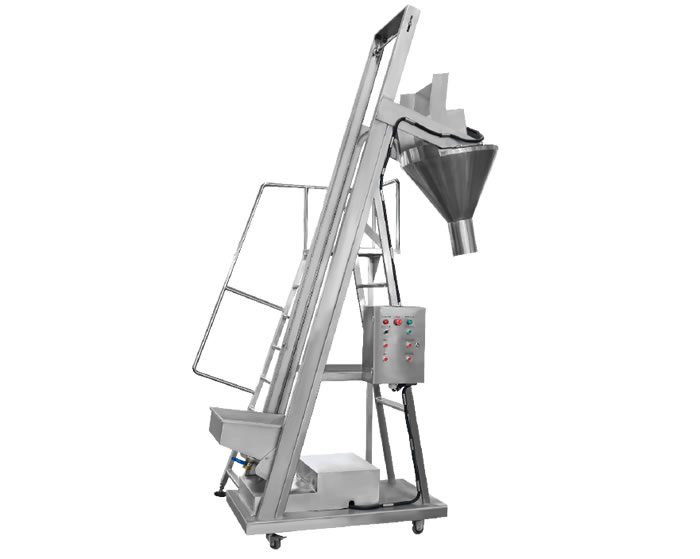 斗式存料提升機(jī)主要是針對(duì)醬腌菜系列產(chǎn)品研發(fā)的,通常配套于螺桿計(jì)量機(jī)。