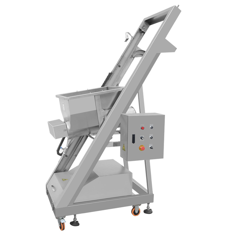 螺桿提升機(jī)通常配套于收縮杯下料器和電子組合秤,主要針對酸筍、酸豆角、蘿卜干、榨菜等黏度比較大的產(chǎn)品,讓粘在一起的物料分散開來,有助于控制自動計(jì)量的精度。