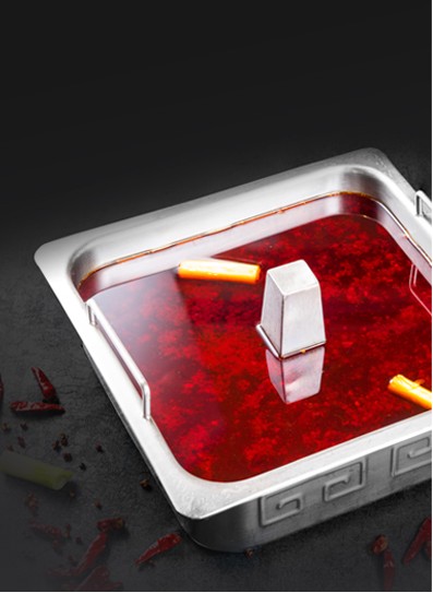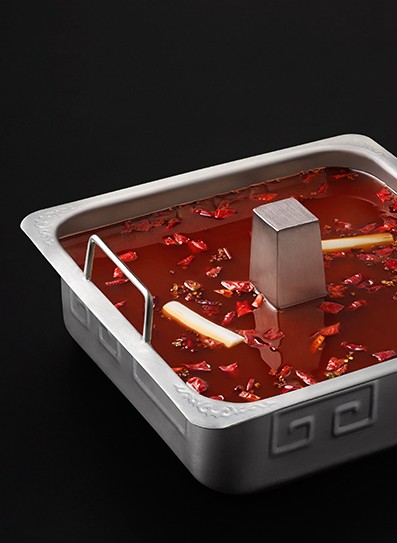 嚴選花椒、辣椒、香辛料原料,地道川味火鍋;傳統(tǒng)工藝發(fā)酵豆瓣;湯底色澤鮮紅,口感香辣濃郁;推薦搭配涮食脆彈類動物食材。