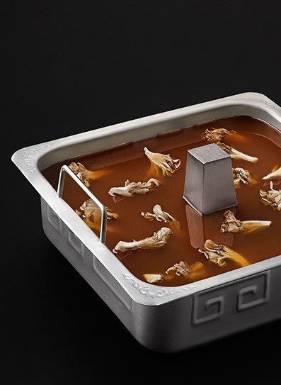 鍋底湯色黃褐,清澈;菌香濃郁、爽口;推薦搭配涮食菌菇類食材。