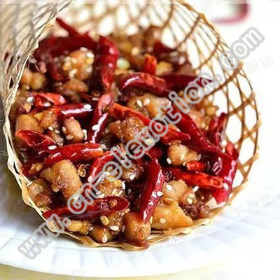 歌樂山辣子雞是歌樂山辣子雞,不是別的地方的辣子雞,也不是辣子雞丁;而是滿盤干辣椒炒出來的炸過的雞肉。關(guān)于這道菜的初產(chǎn)有兩種說法。一說是 20 世紀(jì)初由歌樂山里的一個小飯店的師徒二人創(chuàng)出來的。另外一種說法說的是相近的時間,相同的地域,只不過是由一個老太所創(chuàng)。兩種說法雖有差異,但是這道菜起源于歌樂山,看來卻是無疑的了。是師徒二人研制的也好,是老太獨(dú)創(chuàng)的也罷,都已不重要。重要的是這道菜真的好吃。道地的做法,辣椒用的是四川或者貴州的朝天椒,雞子用的是歌樂山的土雞。那種味道,自然比我們通常買的大規(guī)模養(yǎng)殖出來的雞肉好了許多。
