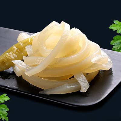 豬皮味甘、性涼、有滋陰補虛,清熱利咽的功使?,F(xiàn)代,科學(xué)家們發(fā)現(xiàn),經(jīng)常食用豬皮或豬蹄有延緩衰老和抗癌的作用。因為豬皮中含有大量的膠原蛋白,能減慢機體細胞老化。尤其對陰虛內(nèi)熱,出現(xiàn)咽喉疼痛、低熱等癥的患者食用更佳。