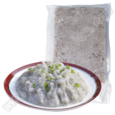 1、購買冷凍蝦滑,在吃之前先連同包裝放在冷水中解凍,冬天約一個(gè)小時(shí)左右,夏天會(huì)快一些。