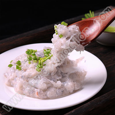 蝦滑的做法是把蝦去殼,通過上千次的摔打,使肉具有粘性,讓其保持原有的營養(yǎng)成分,又具有了爽脆的口感。