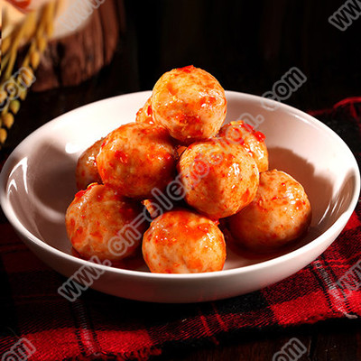 2. 攪至有粘性時(shí),用手試擠一個(gè)魚丸,放入冷水中,如能浮起,隨即加入攪打成泡沫狀的蛋清3個(gè)、濕淀粉50克、味精1.5克、熟豬油50克仍順一個(gè)方向攪勻,即成魚丸料子;