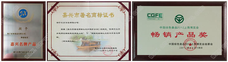 海寧亞泰食品有限公司專業(yè)生產小包裝蔬菜,目前主要產品有“雙山王”、“周亞明”、“超山王”三個品牌的榨菜絲、榨菜片、榨菜芯、蘿卜、大蒜頭等。自成立以來,公司始終堅持以“質量第一、客戶至上”為目標,認真抓好質量管理,使公司產品質量逐年提高。1996年在全國名優(yōu)食品博覽會上被評為金獎產品,1997年被海寧市技術監(jiān)督局評為海寧市“質量十佳蔬菜企業(yè)”,1999年被海寧市計經委、海寧市技術監(jiān)督局評為“海寧市榨菜質量首選品牌企業(yè)”,2000年在中國長春國際農業(yè)食品博覽會榮獲金獎,2001年“雙山王”商標被嘉興市工商局評為嘉興市著名商標,2003年在中國長春國際農業(yè)食品博覽會上被評為名牌產品,同年被海寧市人民政府認定為市級農業(yè)龍頭企業(yè),2007年2月通過了國家食品質量安全QS認證,取得了全國工業(yè)產品生產許可證,2008年通過了ISO9001:2000質量管理體系認證,2011被評為中國綠色食品,2013年“雙山王”品牌醬腌菜又被評為嘉興市名牌產品。目前產品暢銷國內十多個省、市、區(qū),深受廣大消費者的歡迎。
